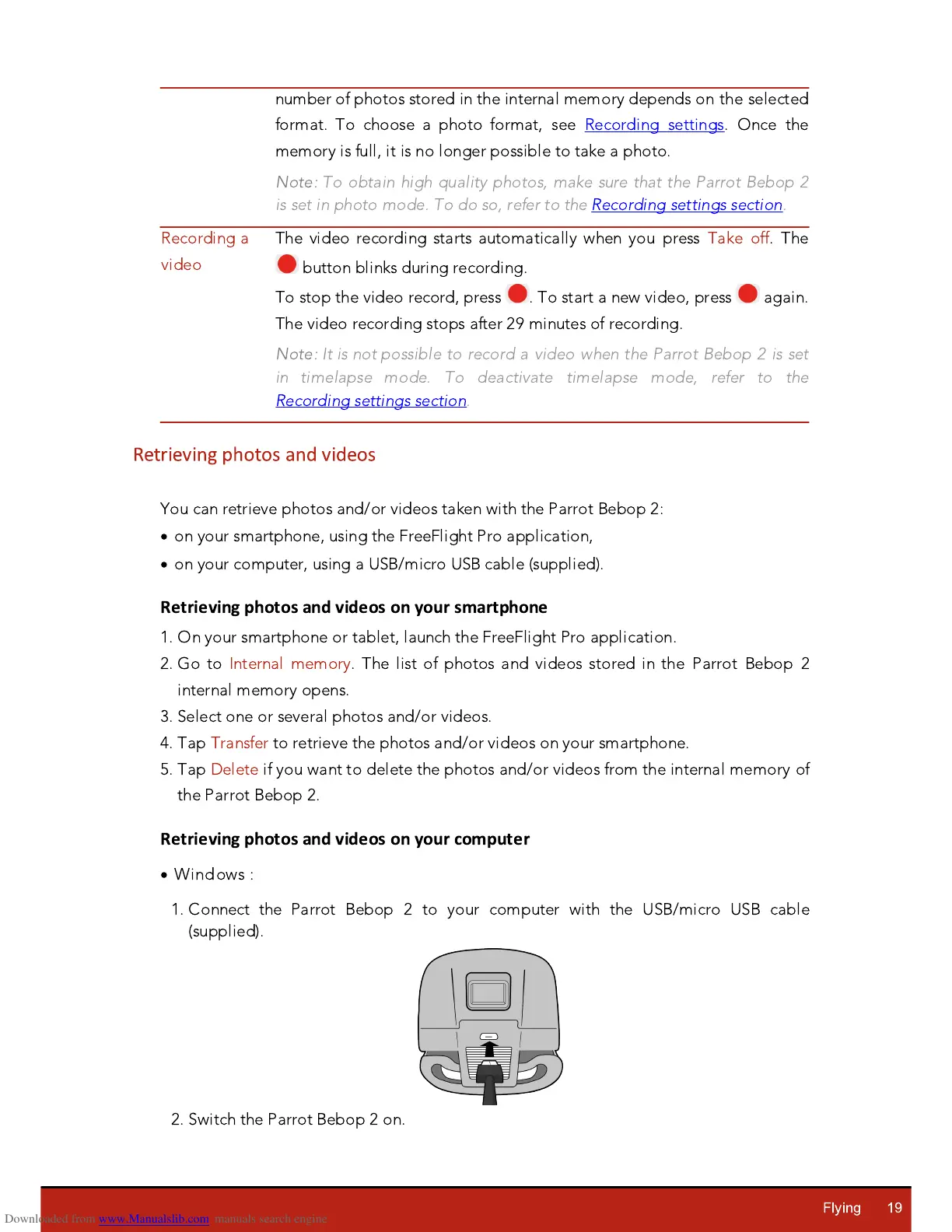 ou can retrieve photos and/or videos taken with the Parrot Bebop 2: