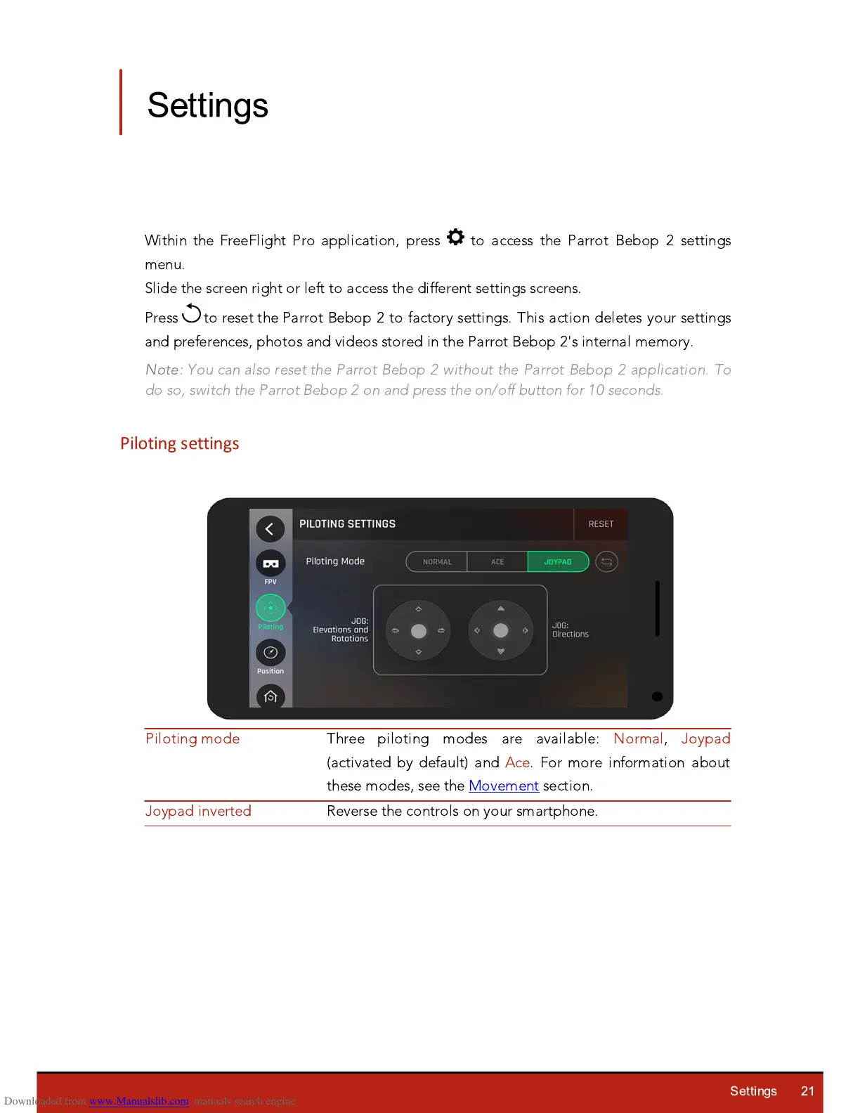 Three piloting modes are available: Normal,