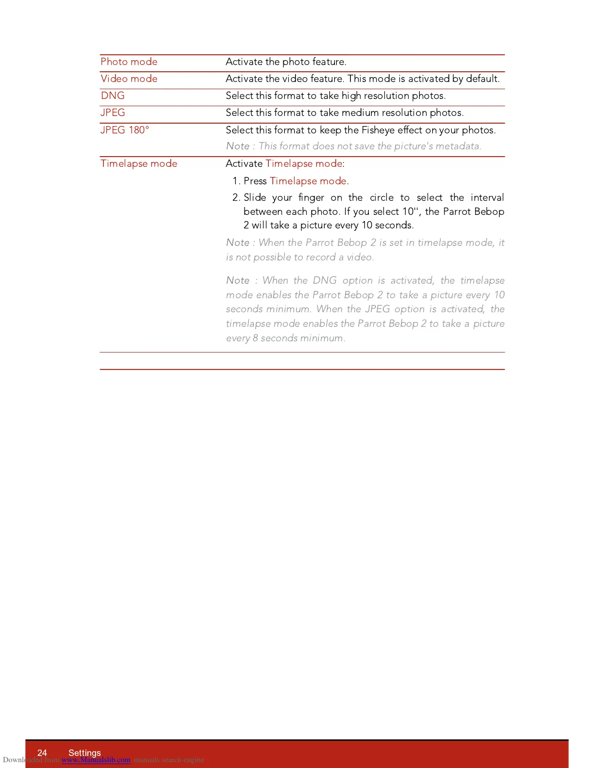 When the Parrot Bebop 2 is set in timelapse mode, it
