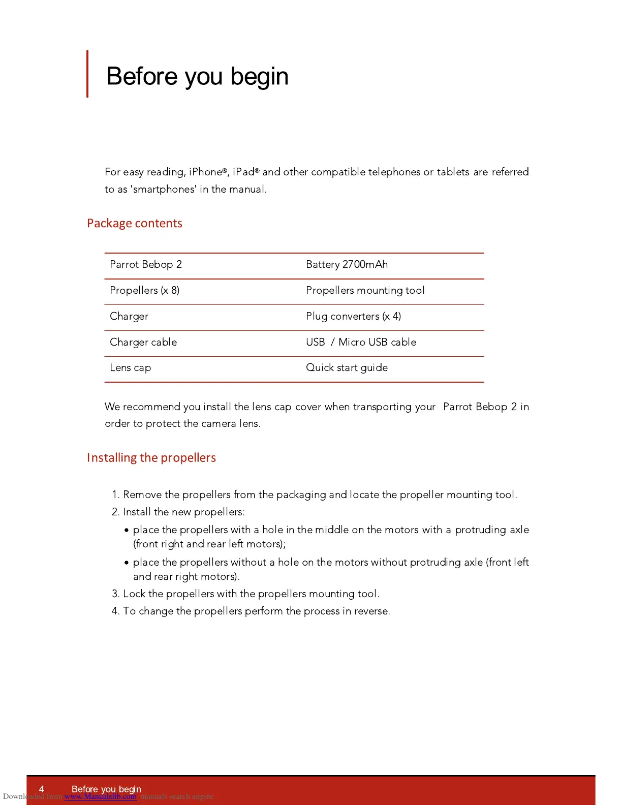 Installing the propellers