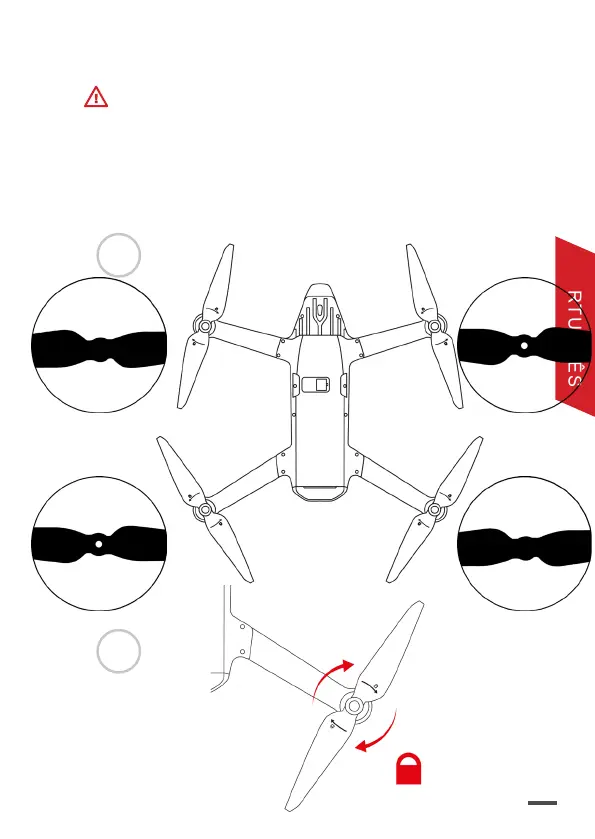 Com o drone desligado, aparafuse as hélices