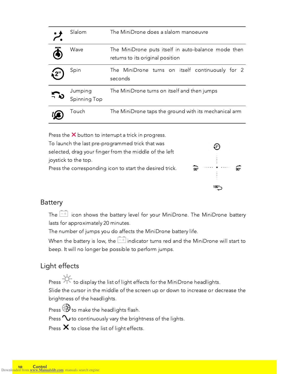 icon shows the battery level for your MiniDrone. The MiniDrone battery