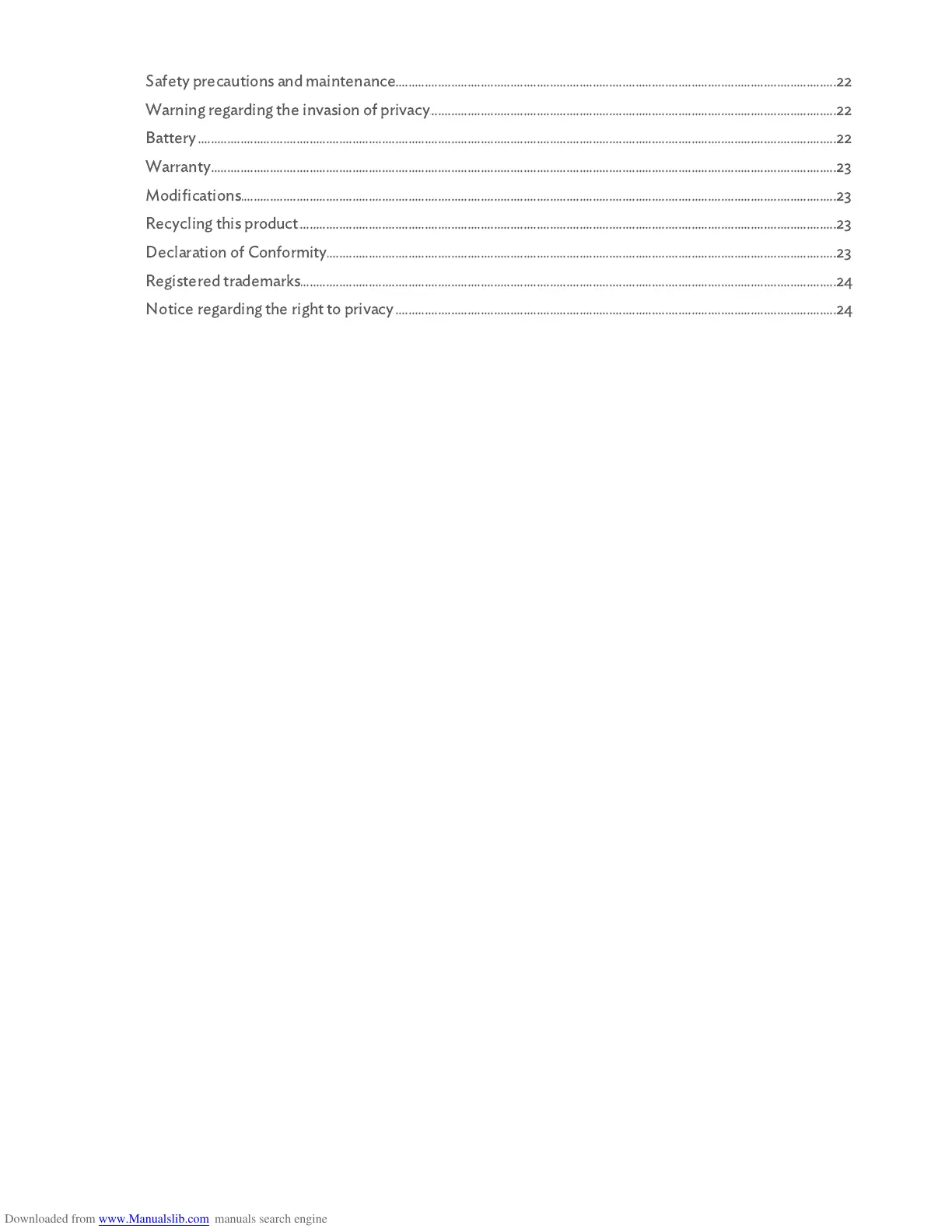 ...........................................................................................................................................................................................................22Warning regarding the invasion of privacy