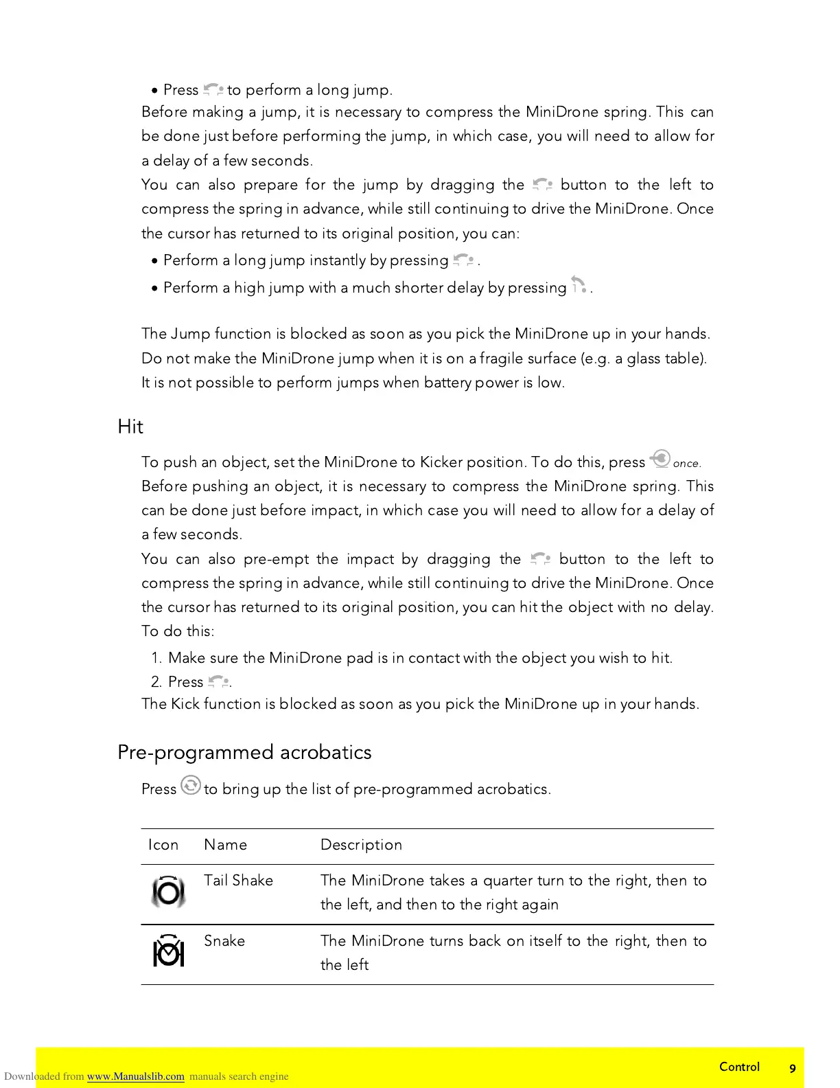 Before making a jump, it is necessary to compress the MiniDrone spring. This can