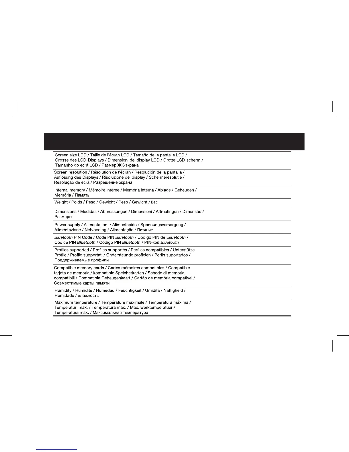 Technical specification / Spécifications techniques / Especificaciones tecnicas / Technische Kendaten /