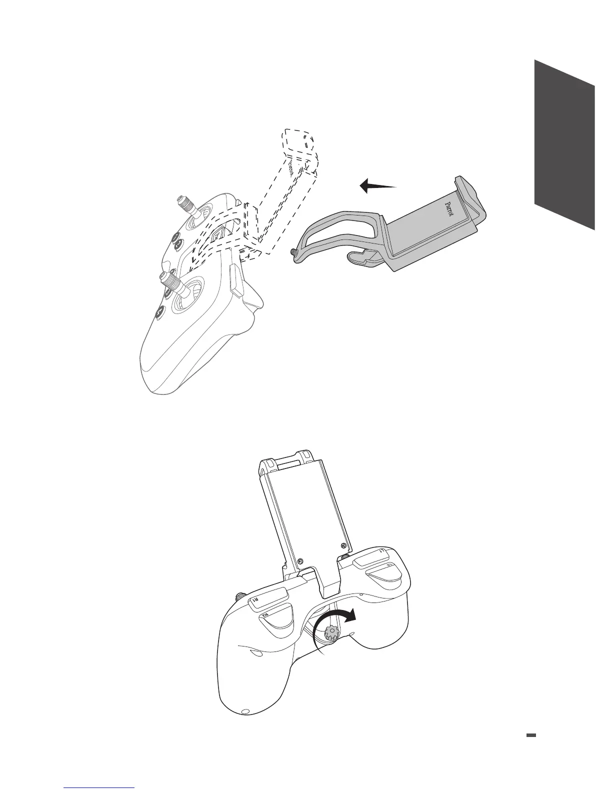 1. Secure the smartphone holder’s tab in the Parrot