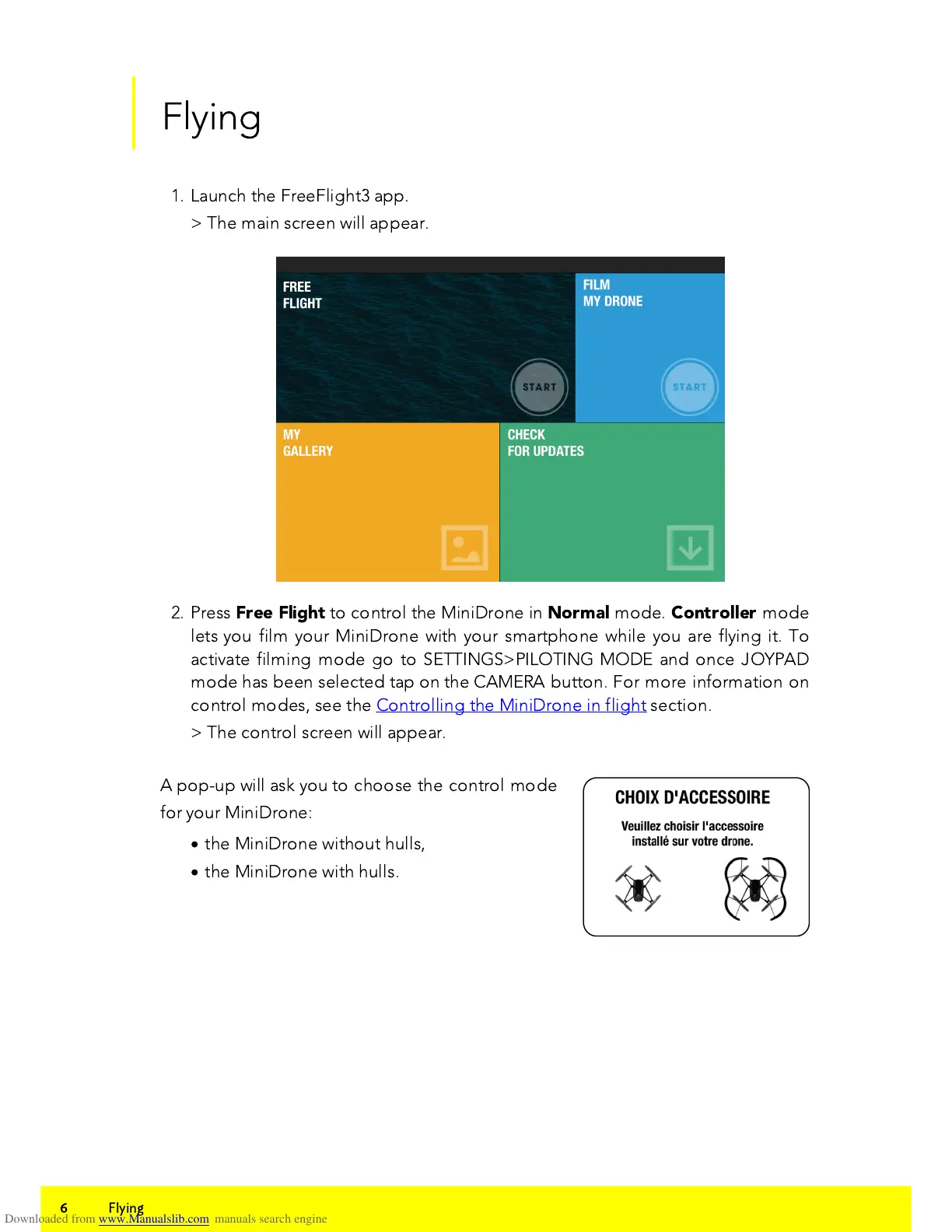 control modes, see the Controlling the MiniDrone in flight section.