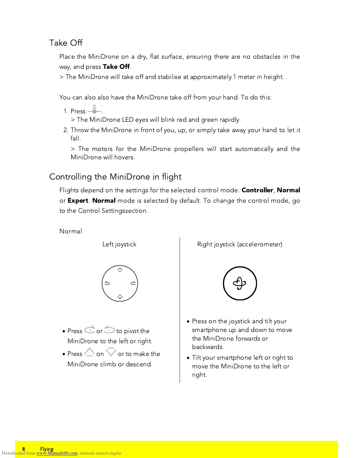 > The MiniDrone will take off and stabilise at approximately 1 meter in height.