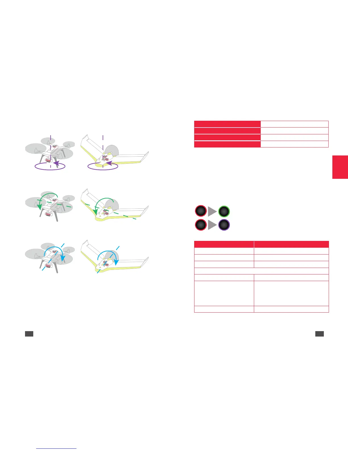 4. Gire el dron por el eje X (roll/alabeo) (plano G) hasta que el indicador