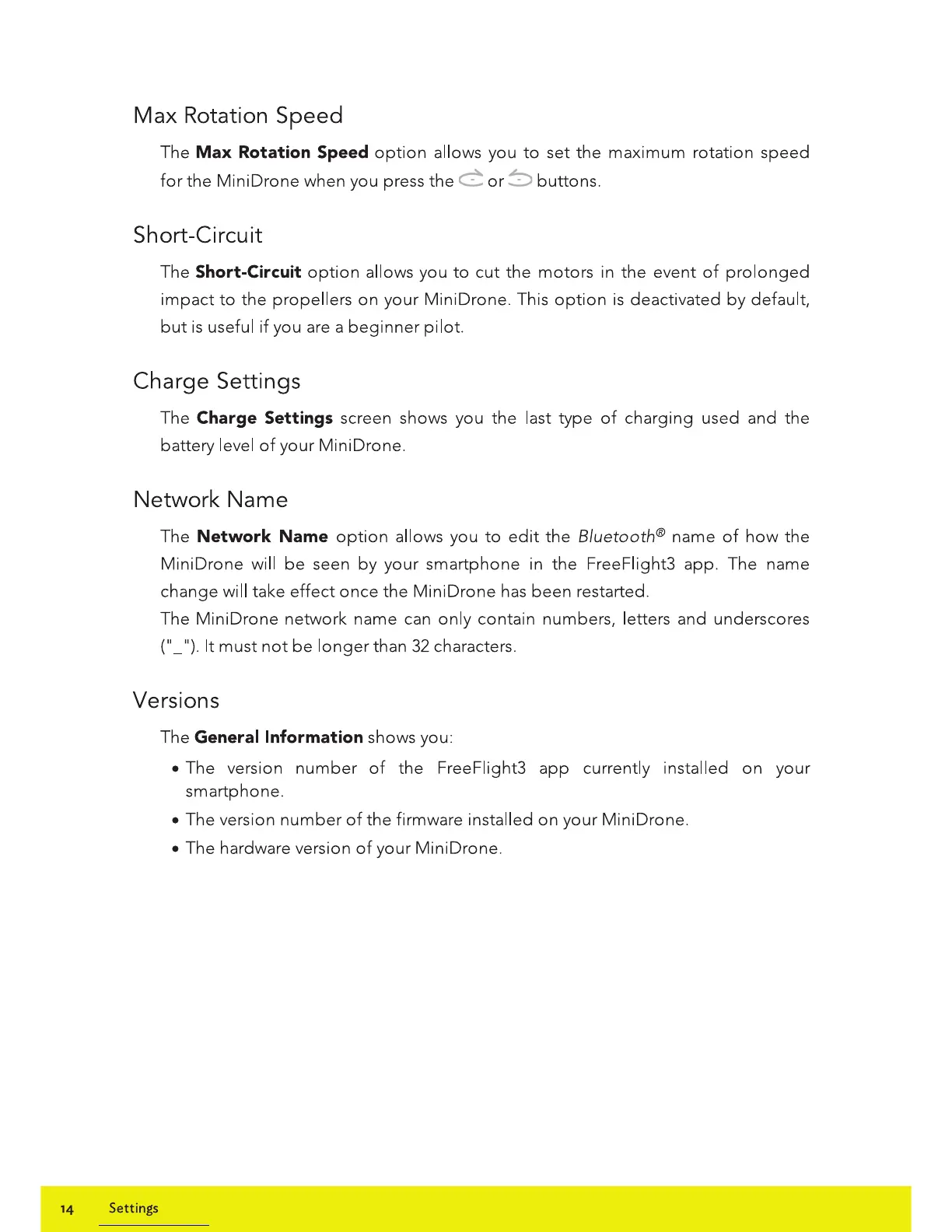 Parrot TRAVIS - Max Rotation Speed; Short-Circuit; Charge Settings; Network Name