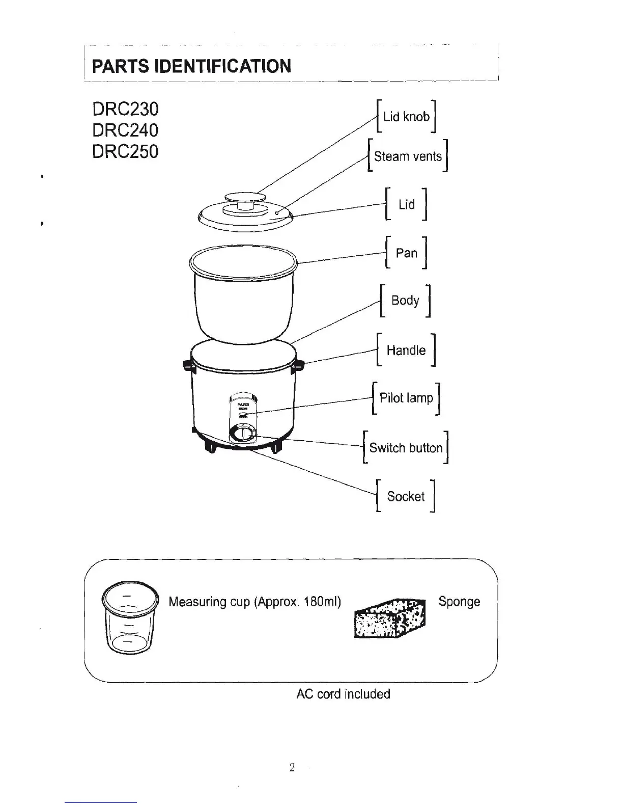 Pars DRC230 - Parts Identification; Cooker Components; Controls and Accessories