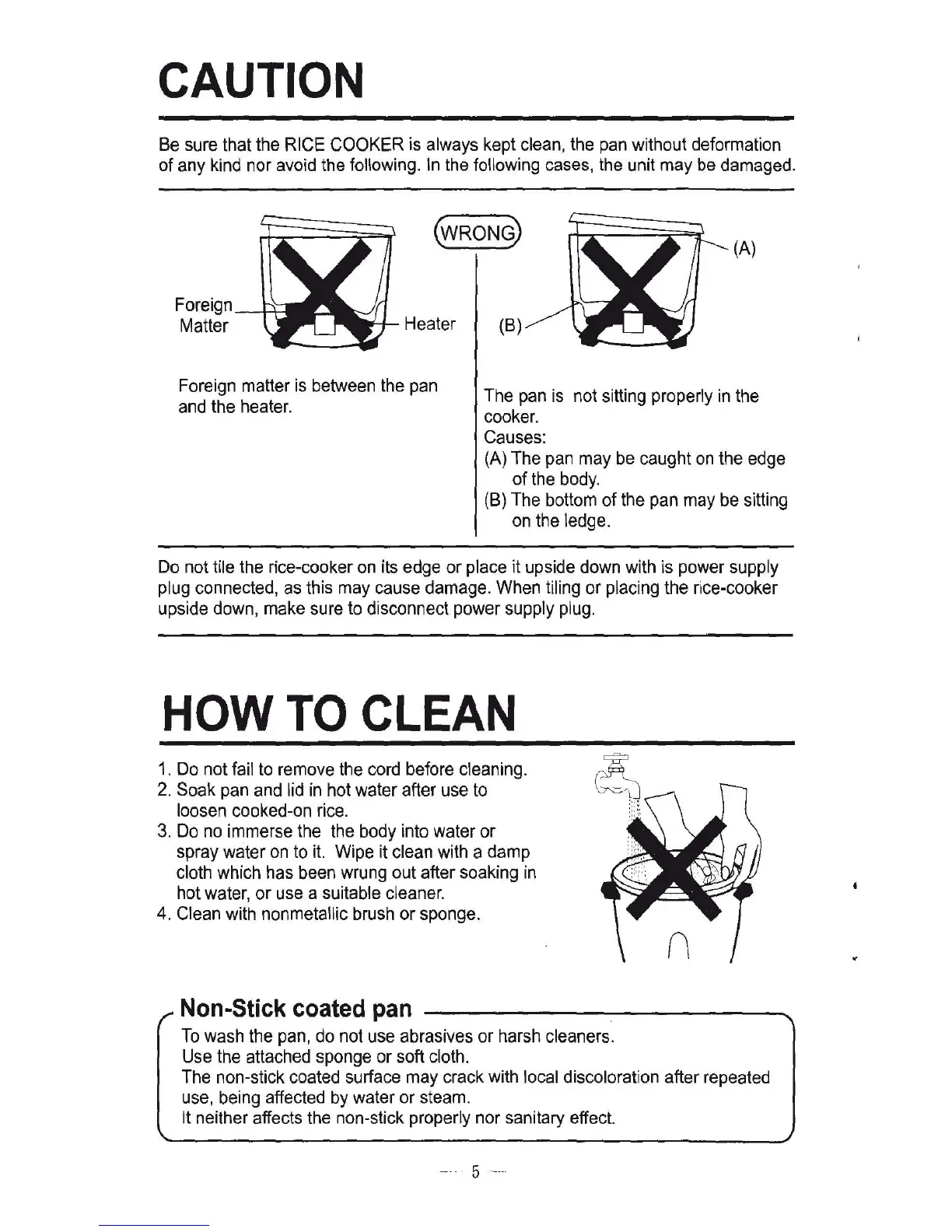 Pars DRC230 - Cautions and Cleaning; Appliance Damage Prevention; Cleaning the Rice Cooker