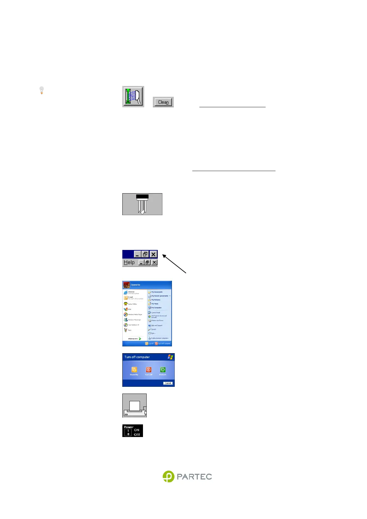 start manually a cleaning cycle. Run 1.6 ml Partec