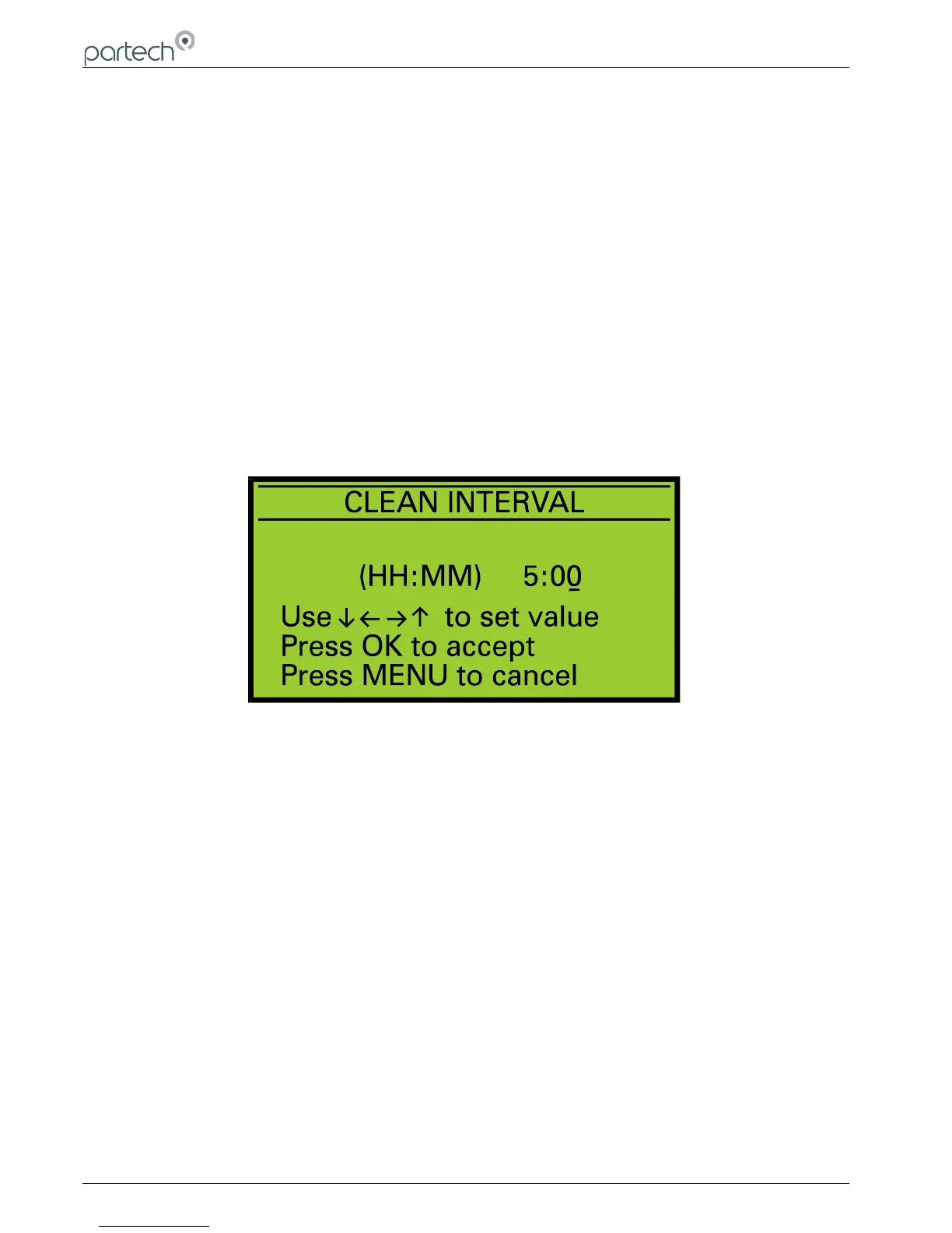 Note: The clean interval is entered in hours and minutes. (HH:MM)