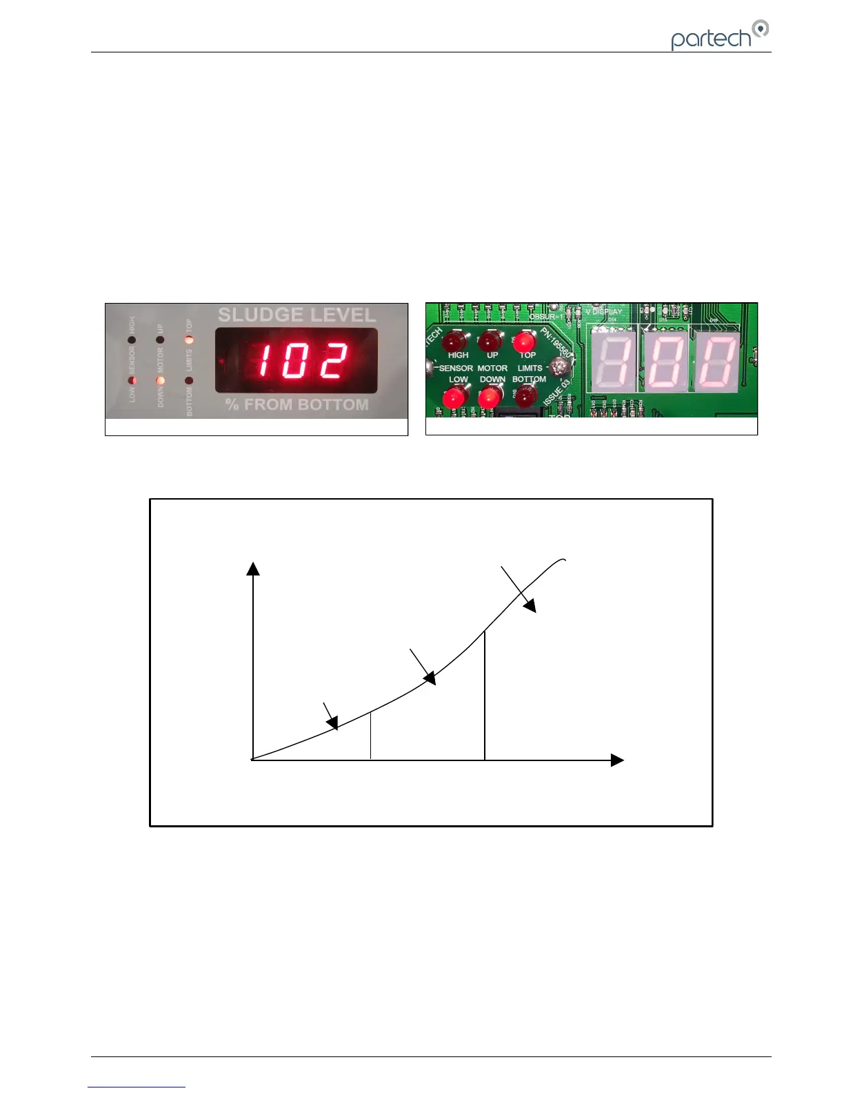The 3 digit LED display will indicate the position of the sludge blanket as a percentage of the depth of the tank. For