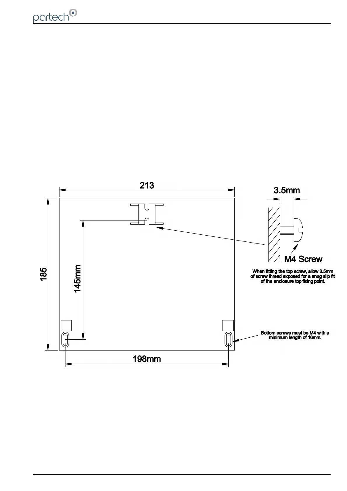 screws. The enclosure has a 14mm shoulder so fixing screws must be at least 16mm long to