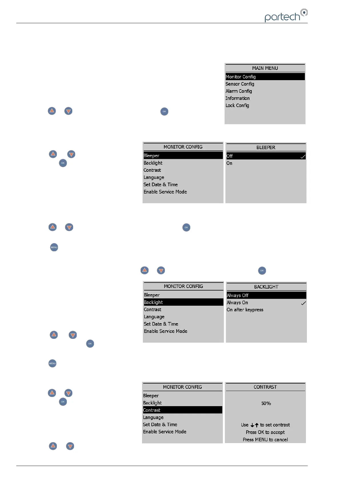 From the MONITOR CONFIG menu press or to highlight BACKLIGHT, and press to select.