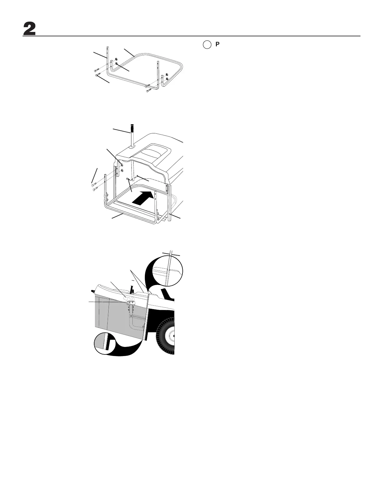 de hierba utilizando los cuatro pernos del chasis (4) 1/4