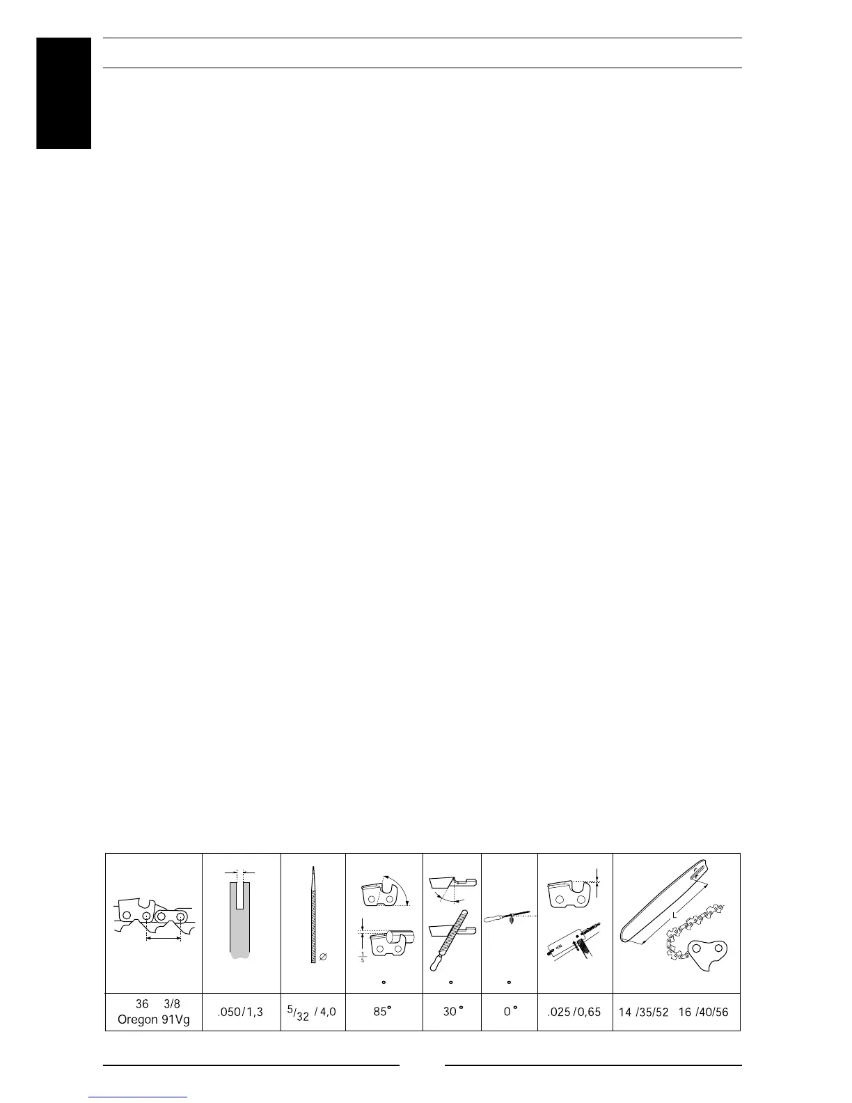 Chain speed, unloaded m/sec. (drive) 14,5 (6 tooth) 15,2 (6 tooth)