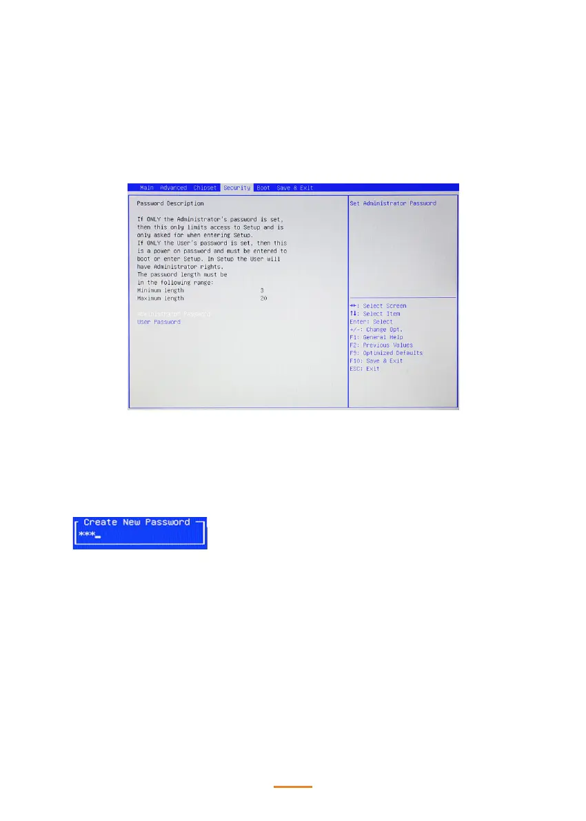 characters. Symbols are ignored. The Administrator/ User Password item dierentiates between