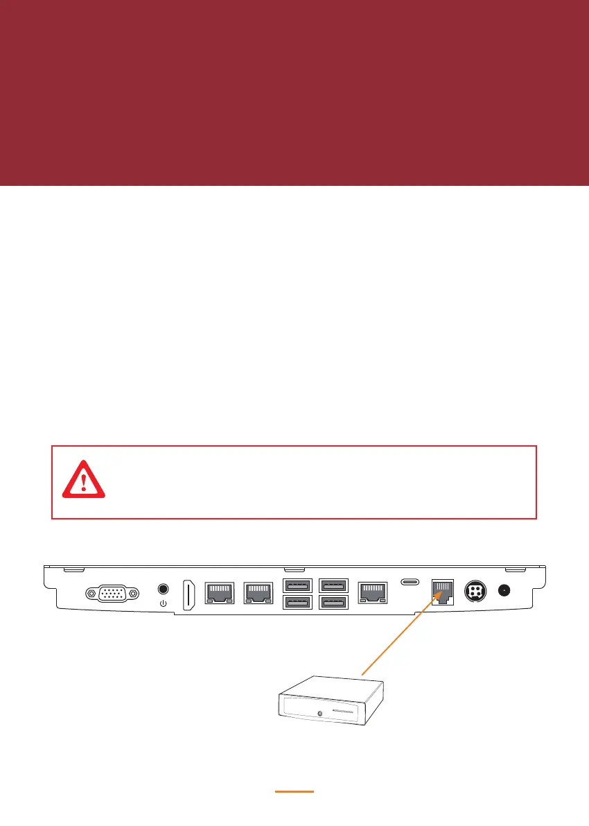 1. Connect the RJ-11 cable from the cash drawer to the RJ-11 connector on the machine as