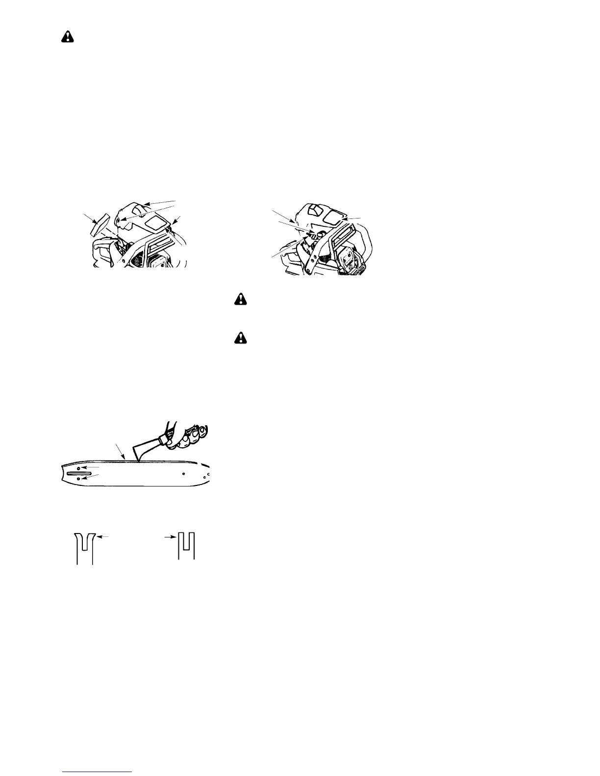 chain brake. Remove bar and chain from