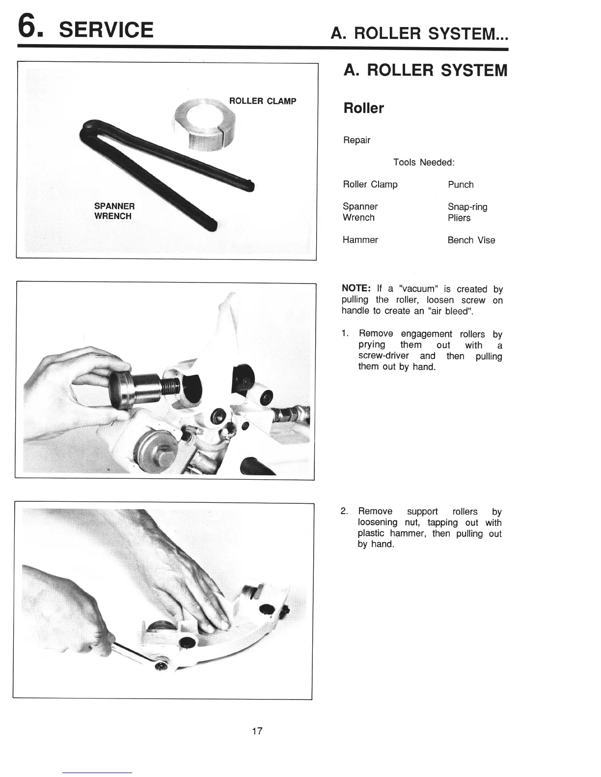 1. Remove engagement rollers by