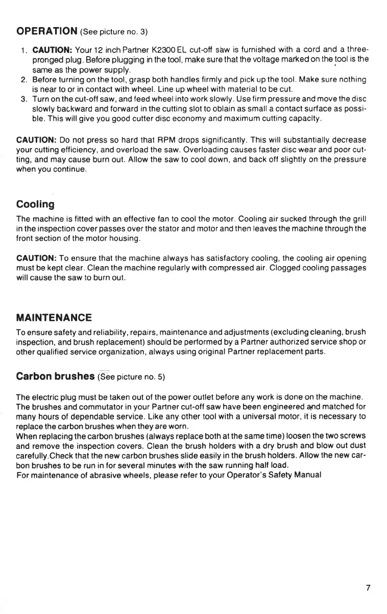 1. CAUTION: Your 12 inch Partner K23OO EL cut-off saw is furnished with a cord and a three-