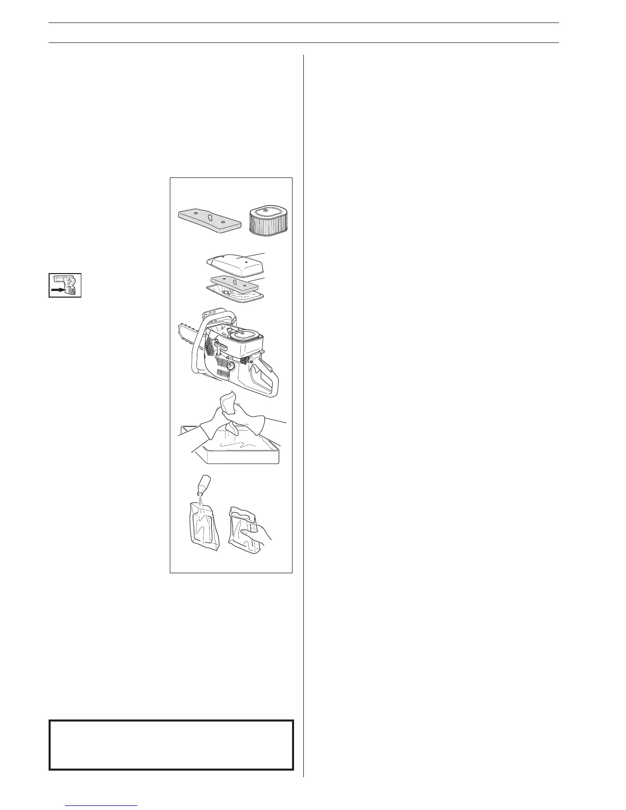• Oil the filter carefully. It is extremely important that the entire