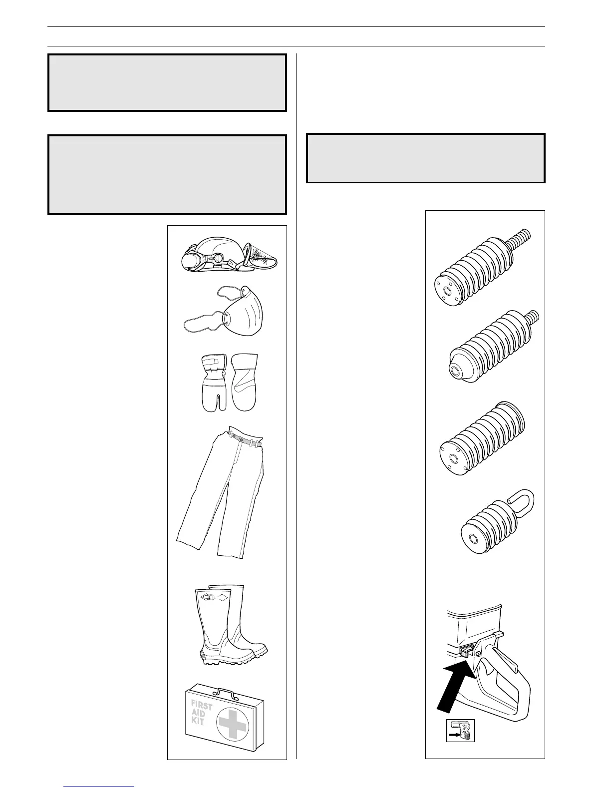 This section describes the power cutter’s safety equipment, its