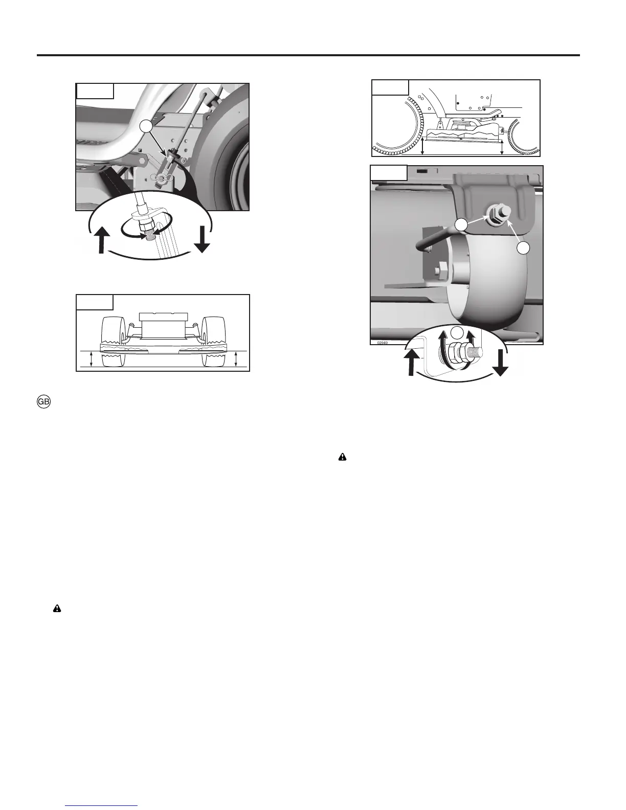 nut (B) clockwise (ltighten) to raise the front of mower, or,