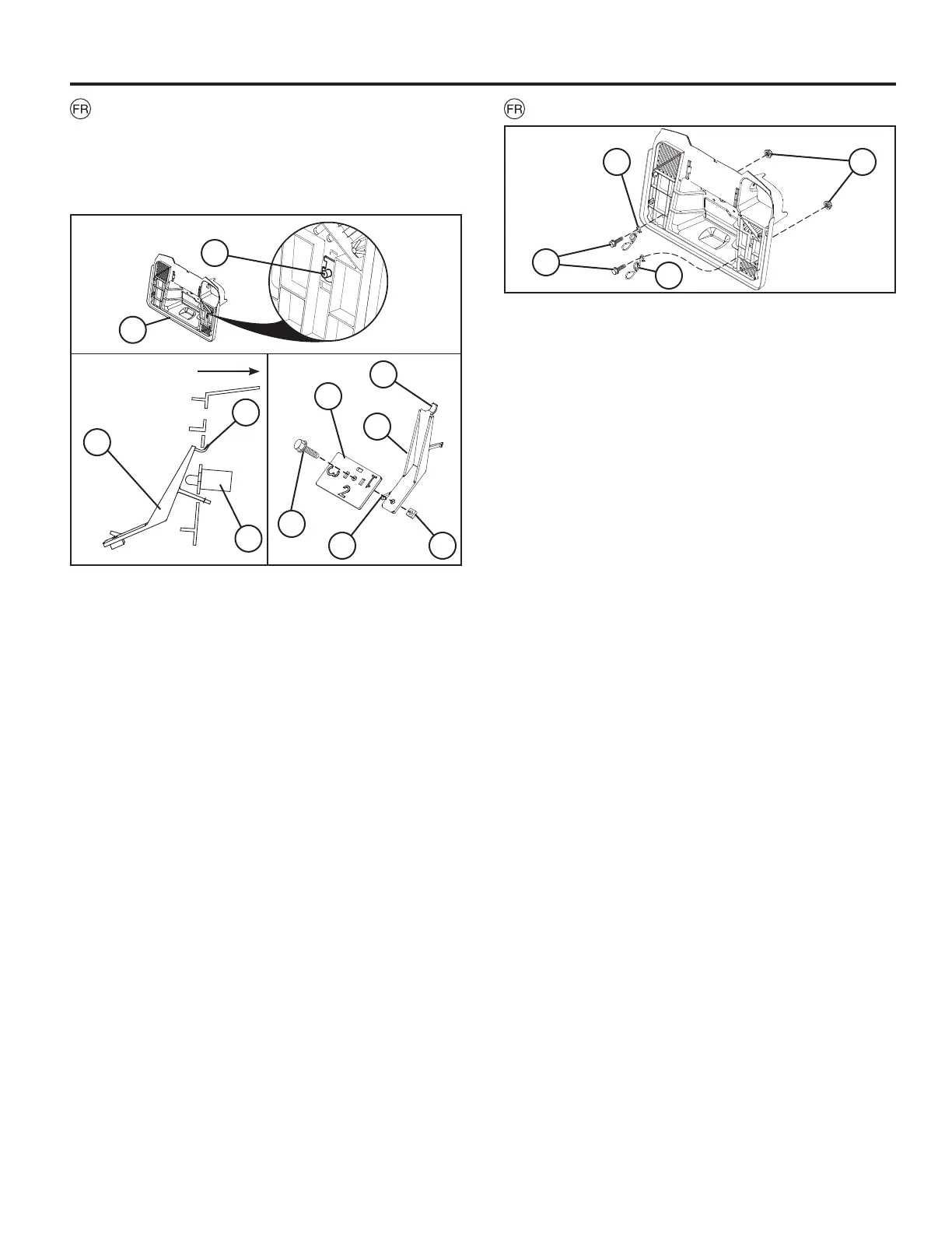 • En vous plaçant debout derrière le tracteur, le bac étant retiré