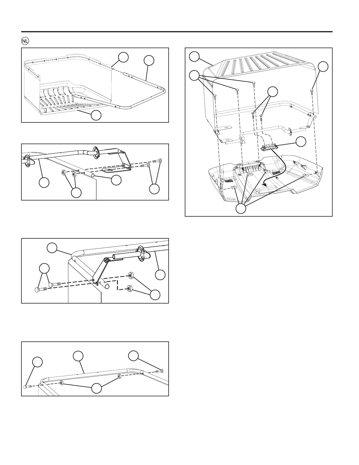 • Voer de buis van het bovenste frame van de opvangbak