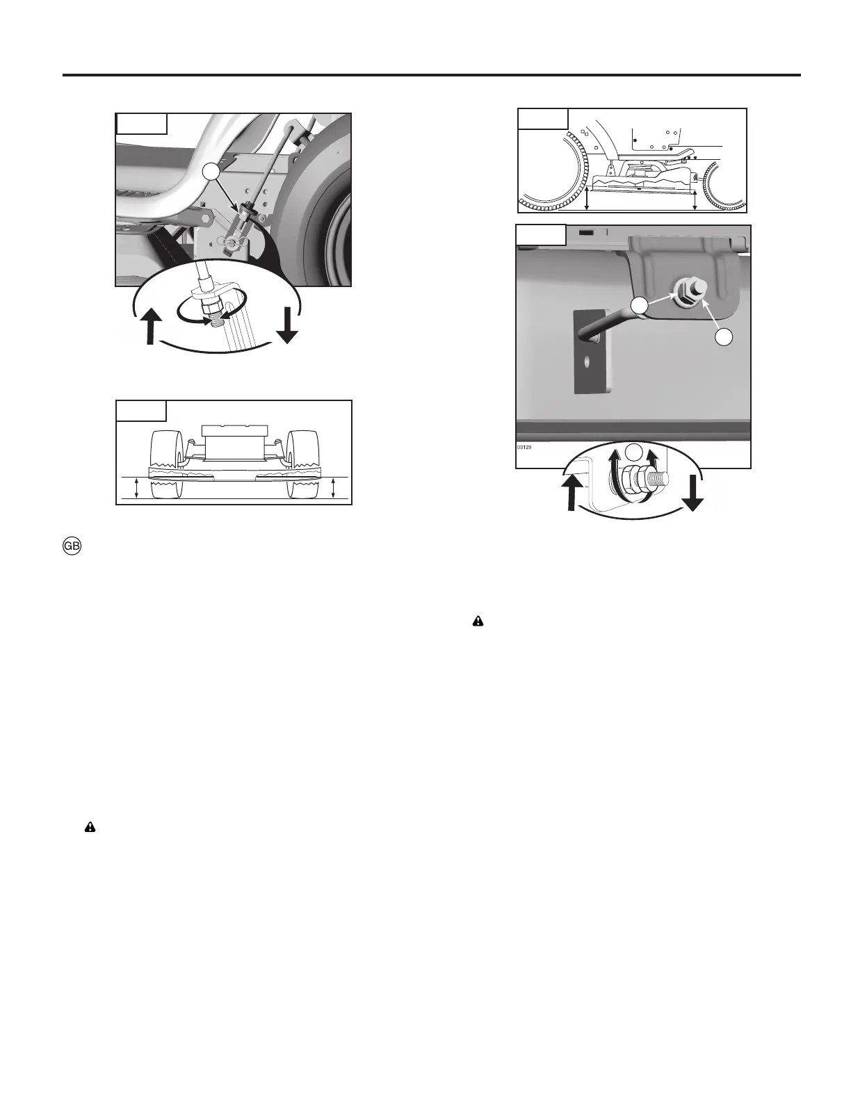 nut (B) clockwise (ltighten) to raise the front of mower, or,
