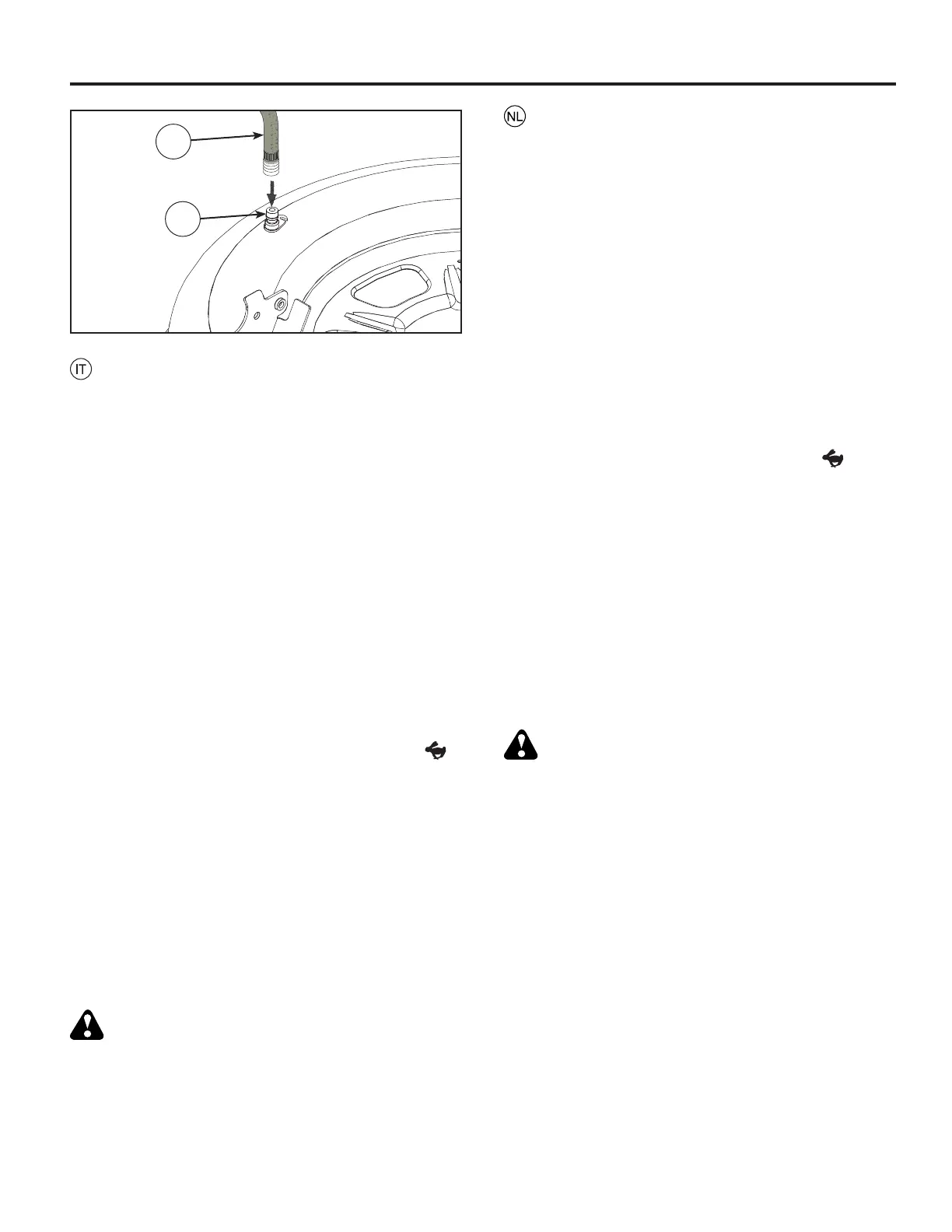 IMPORTANTE: Assicurarsi che il deflettore di scarico del trat-
