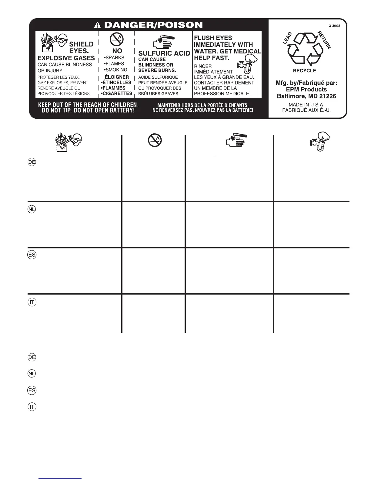 TENERE LONTANO DALLA PORTATA DEI BAMBINI. NON INCLINARE. NON APRIRE LA BATTERIA!
