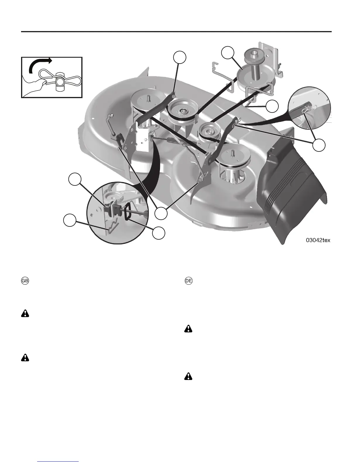 • Den Mäherriemen von der Antriebsrolle (M) abnehmen.