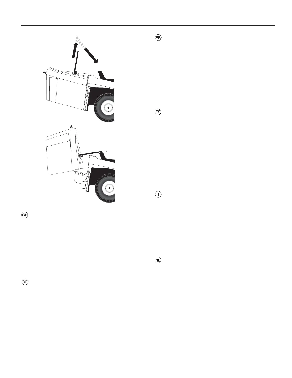 l'avant afin d'ouvrir le bac et vider l'herbe coupée.
