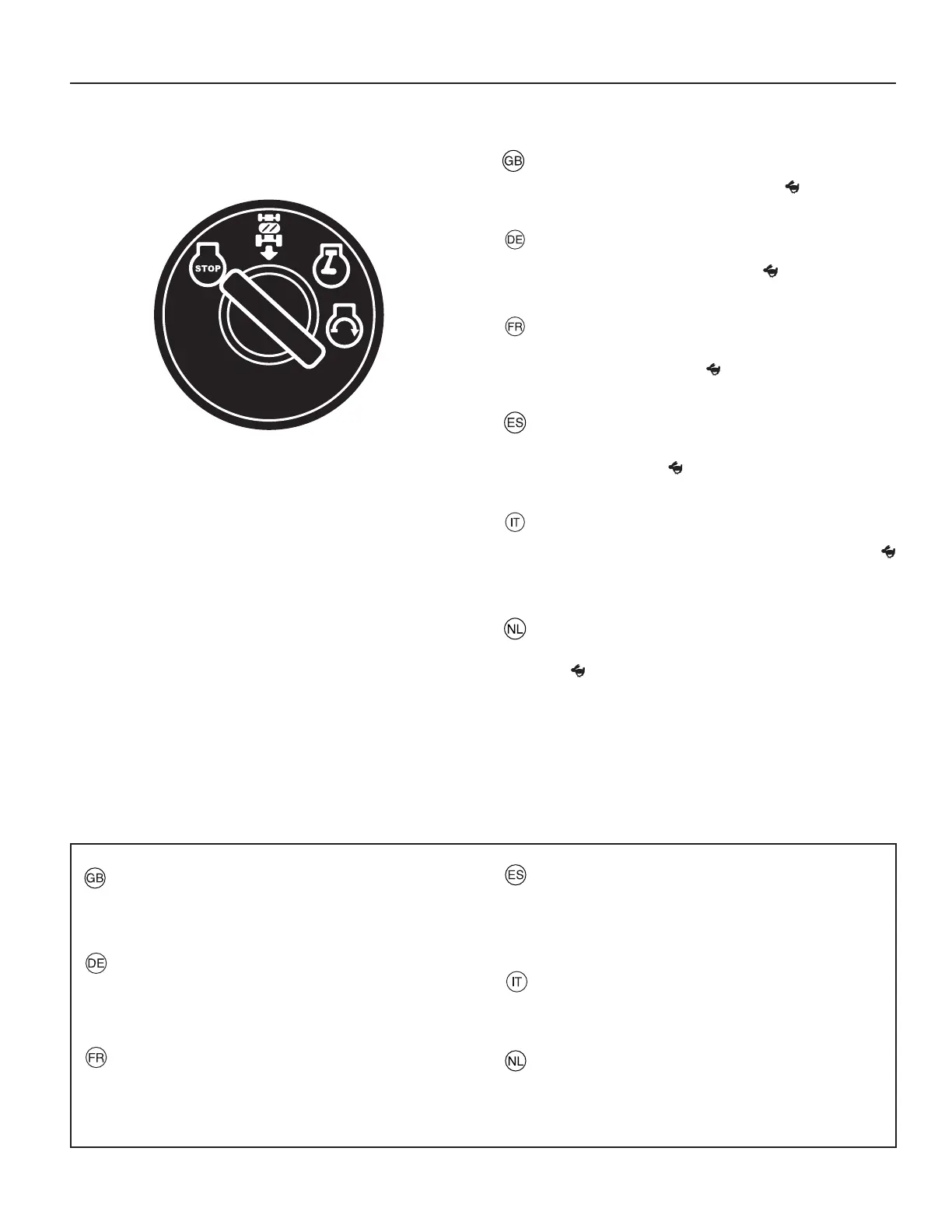 stand “ ”. Verhoog de maaikast en zet de contactsleutel in