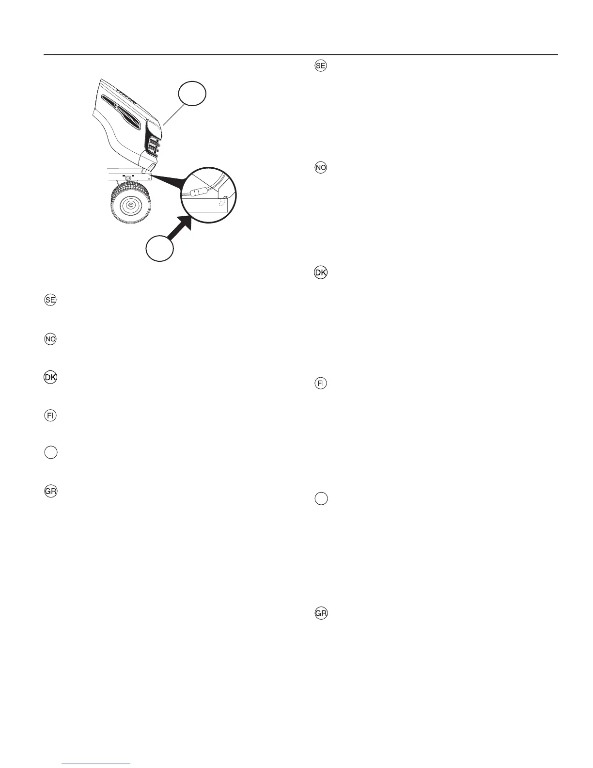 • Stå foran traktoren. Ta tak i sidene på dekselet, vipp