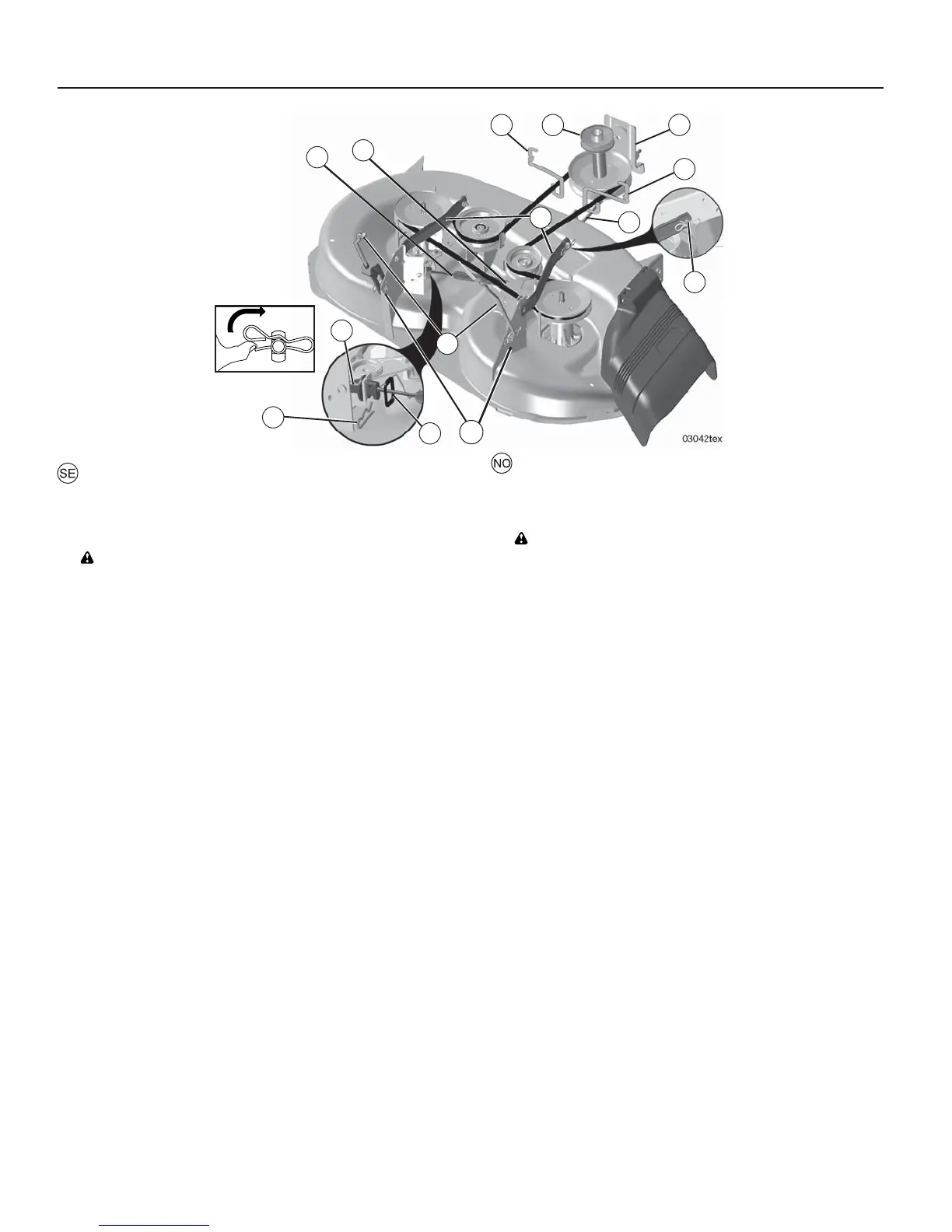 länkenheten (C) ovan på stiftet på gräsklipparens bakre