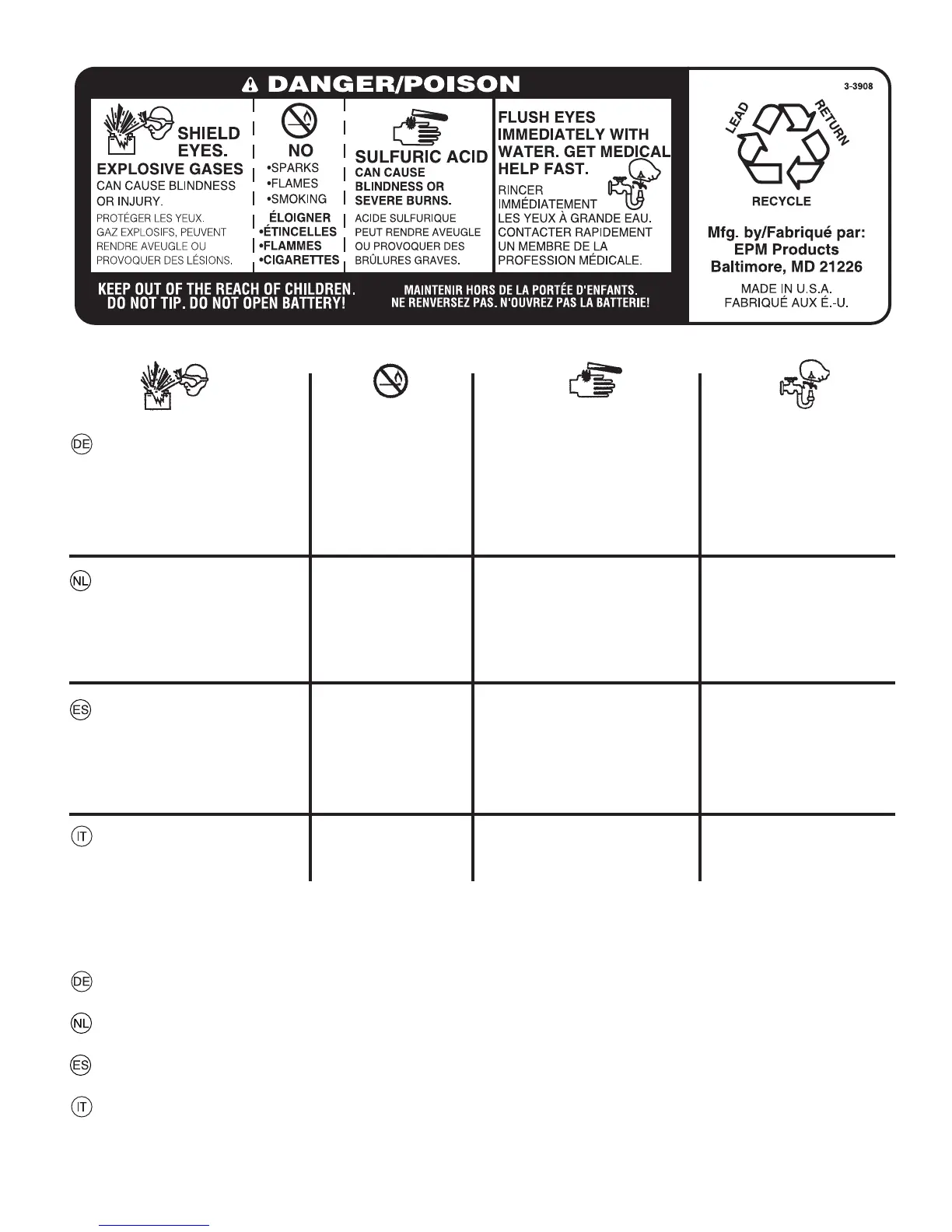 TENERE LONTANO DALLA PORTATA DEI BAMBINI. NON INCLINARE. NON APRIRE LA BATTERIA!