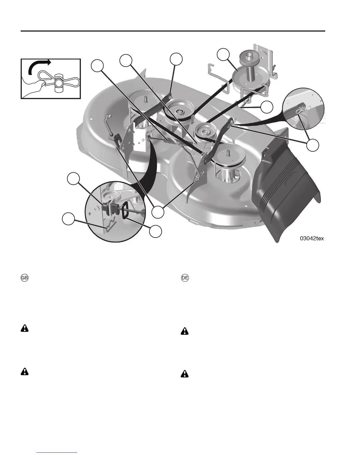 • Den Mäherriemen von der Antriebsrolle (M) abnehmen.