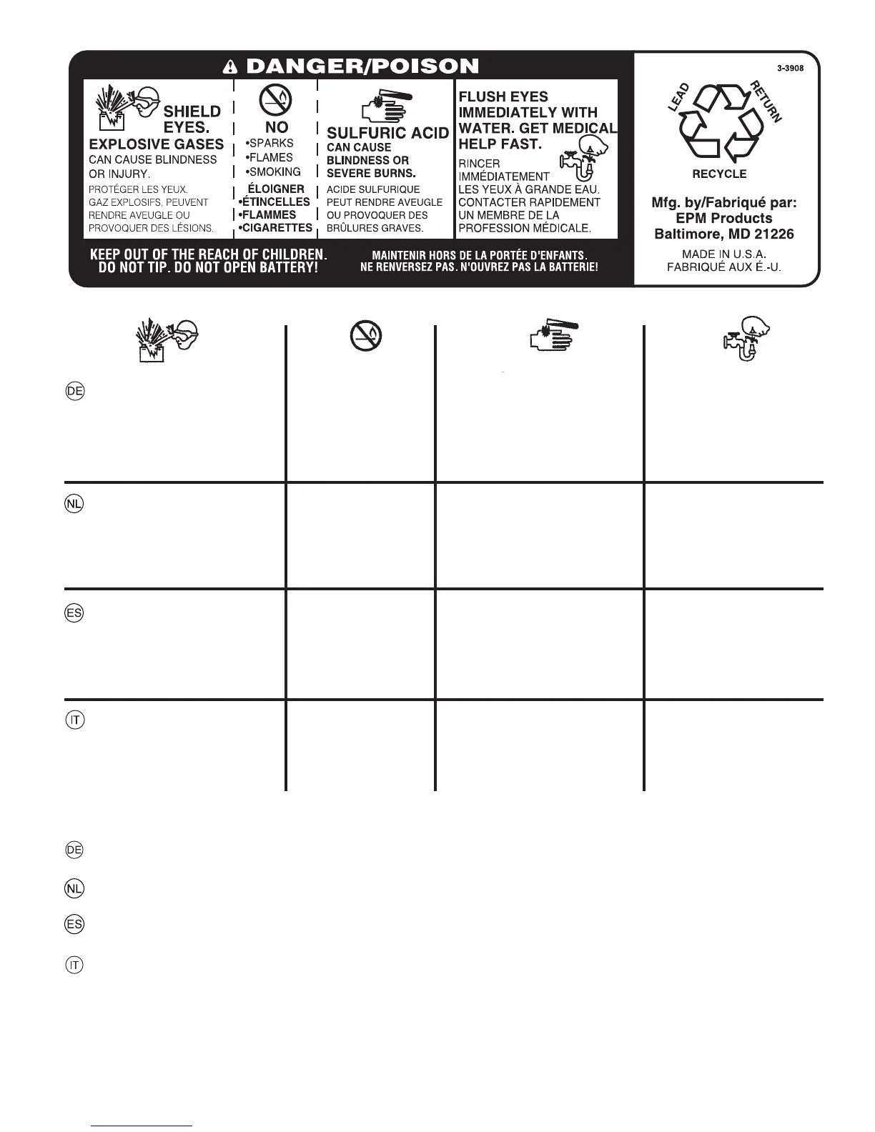 TENERE LONTANO DALLA PORTATA DEI BAMBINI. NON INCLINARE. NON APRIRE LA BATTERIA!