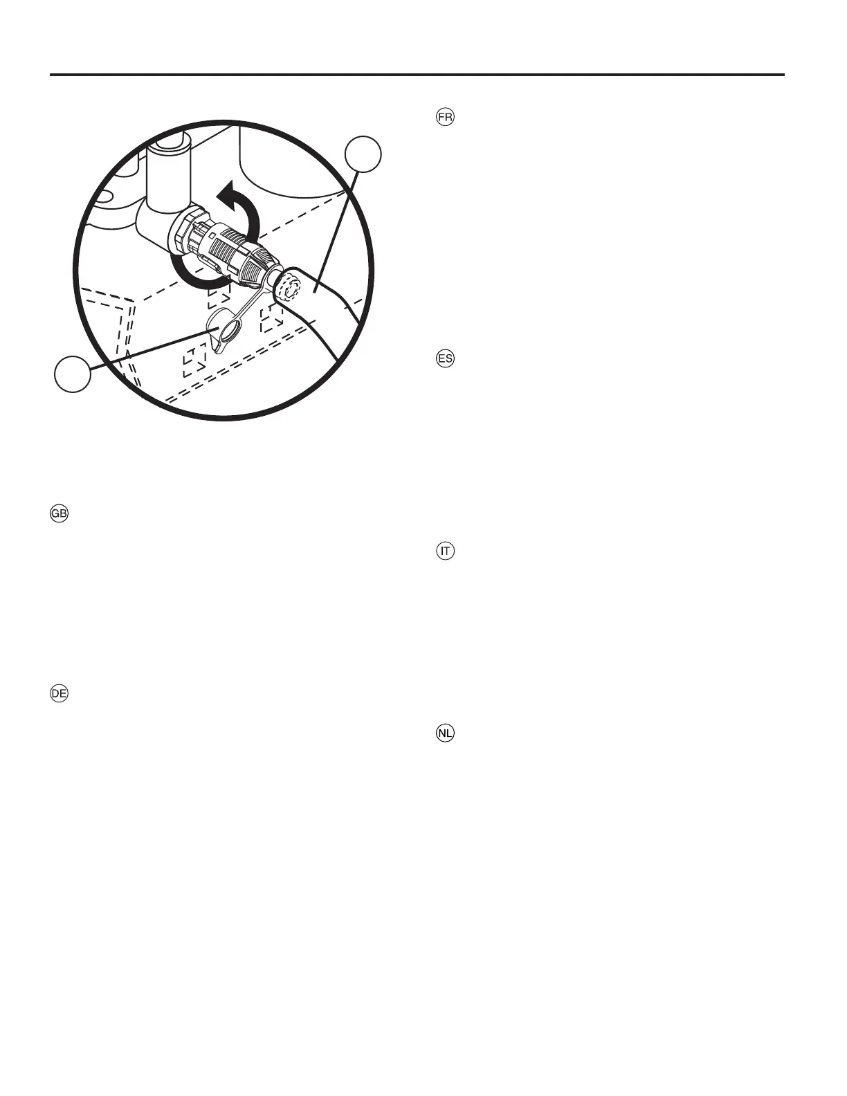 • Retirer le bouchon (1) et placer le tuyau de vidange (2).