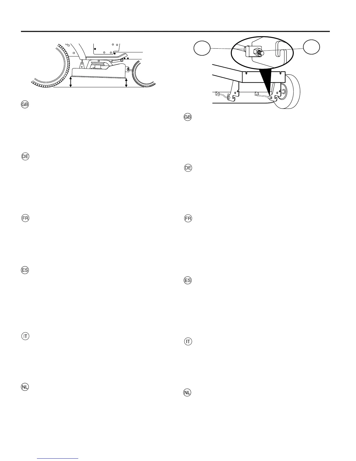 (B) van de maaikast ca. 10 mm (0,375") lager te staan dan