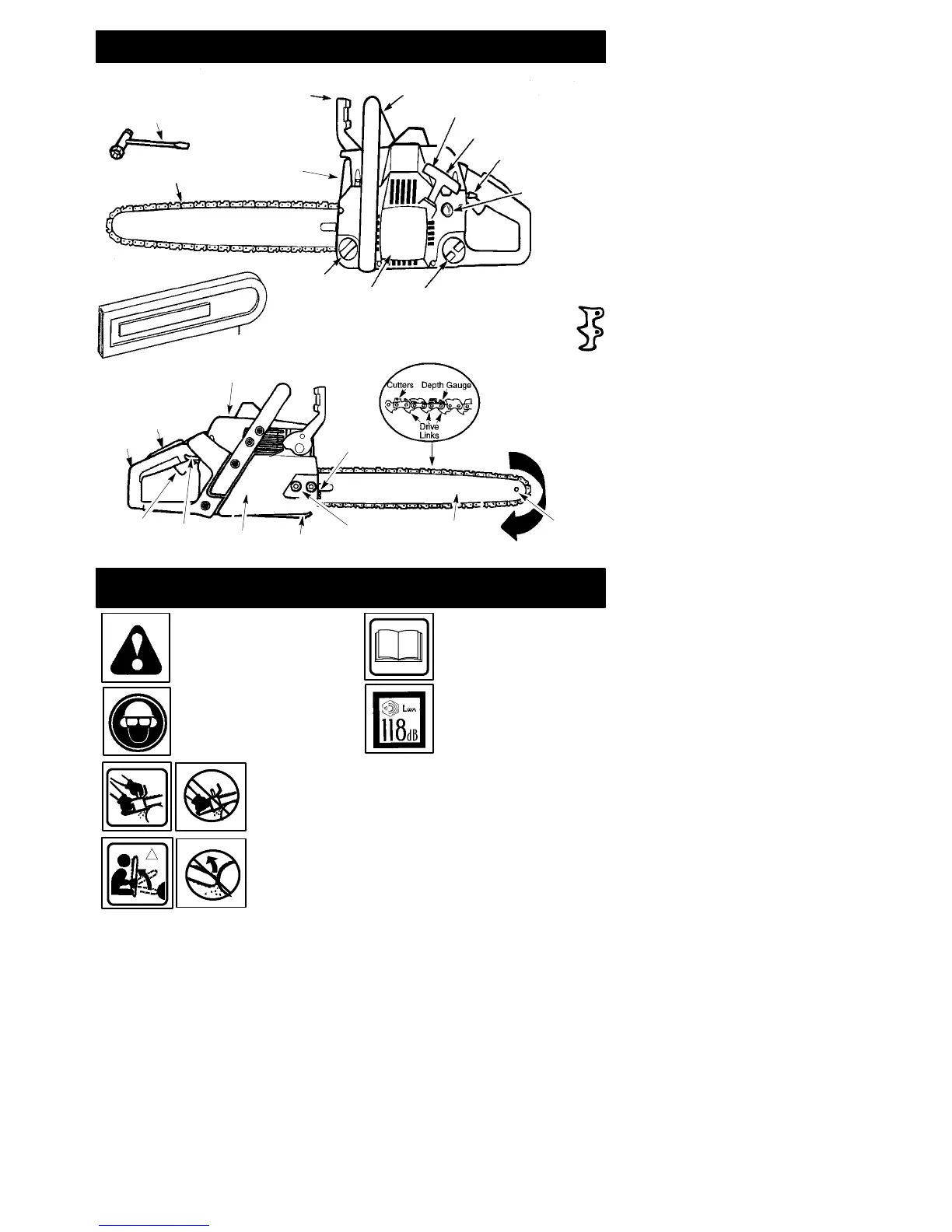 should be avoided; tip contact may cause the guide bar to