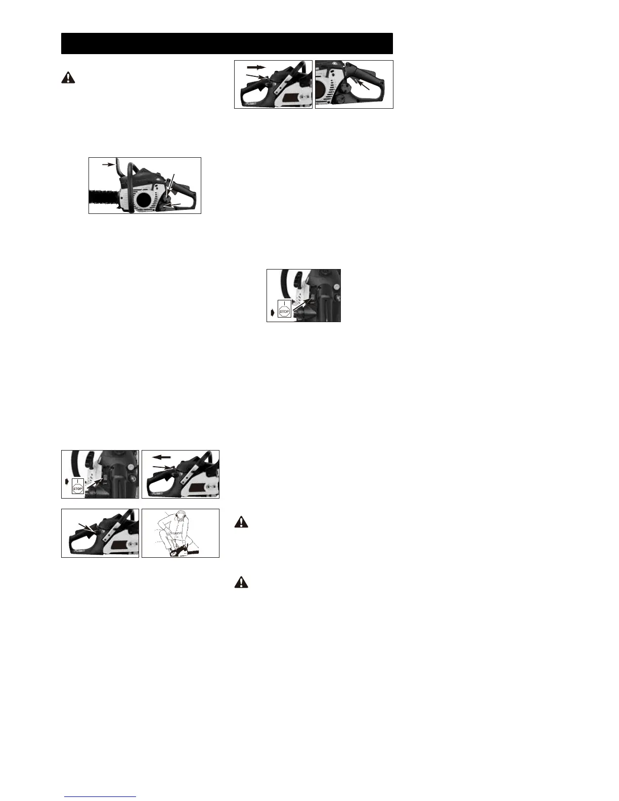 VARNING: Aktivera kedjebromsen