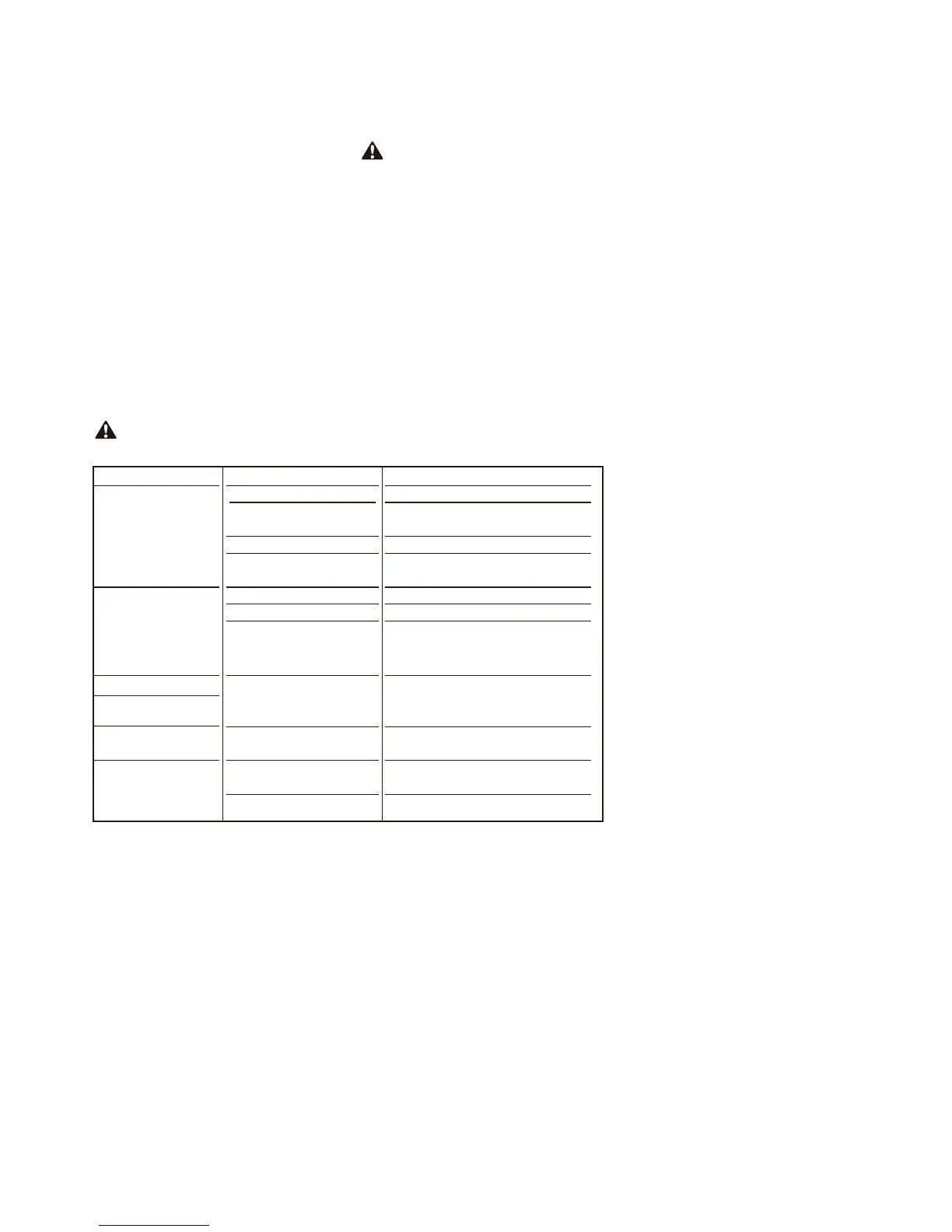 TROUBLESHOOTING TABLE
