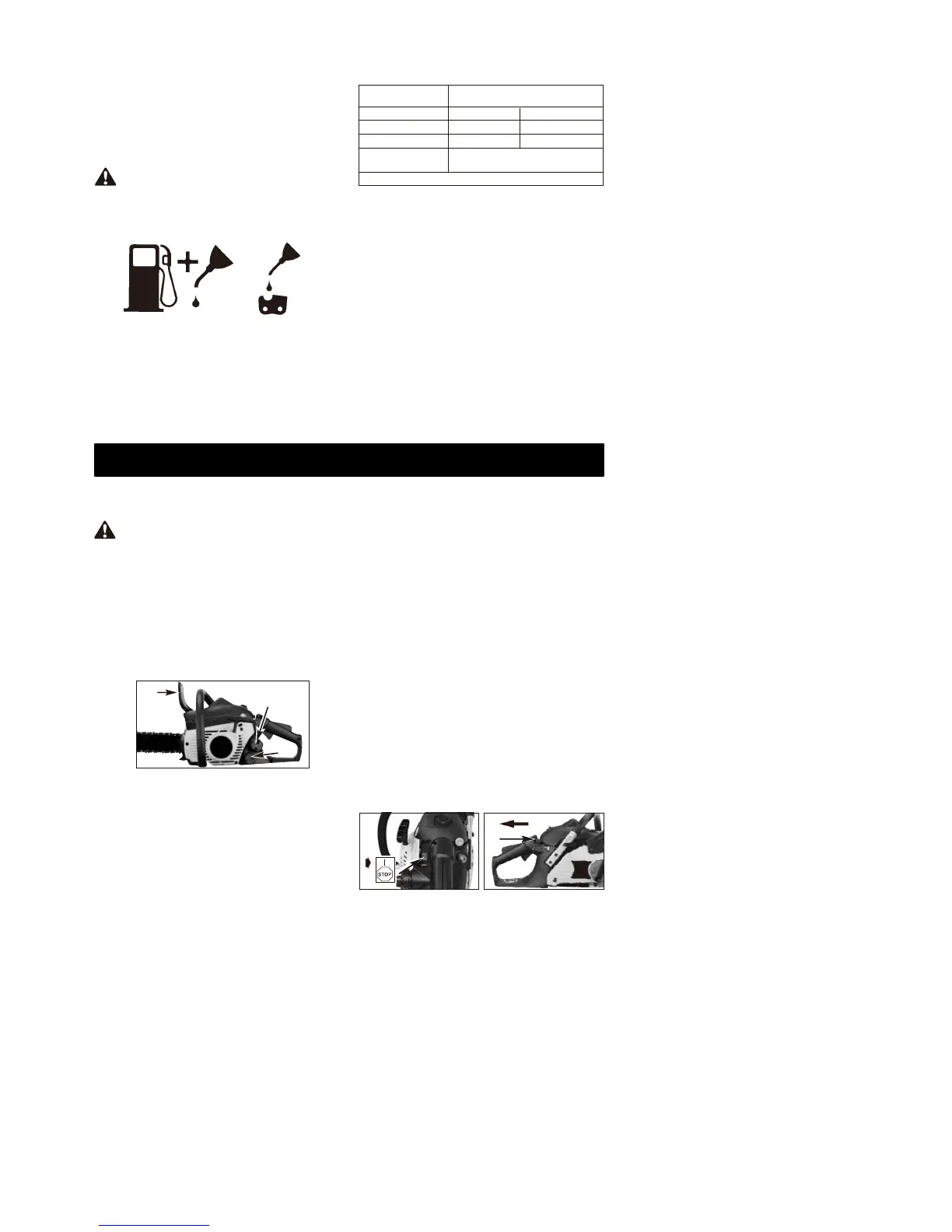 3. Перед запуском бензопилы убедитесь,